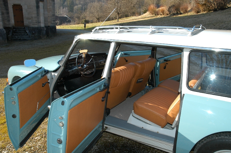 Es handelt sich um ein sog. „Ambulance“-Modell mit asymmetrisch geteilter Rückbank und nachgerüsteten Klappsitzen im Heck. Originalfarbe Blanc Stellaire.