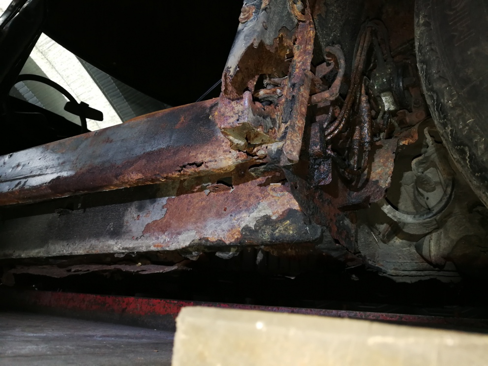 Spass beiseite - mein erster DS sah und war rostmäßig besser, wurde aber durch den Hängertransport am Rahmen beschädigt und war somit verzogen weil die Hinterachstraverse so durch war dass diese sich durchs Gehoppel auf dem Hänger verwunden hat. Ohne Richtbank war nix zu machen...