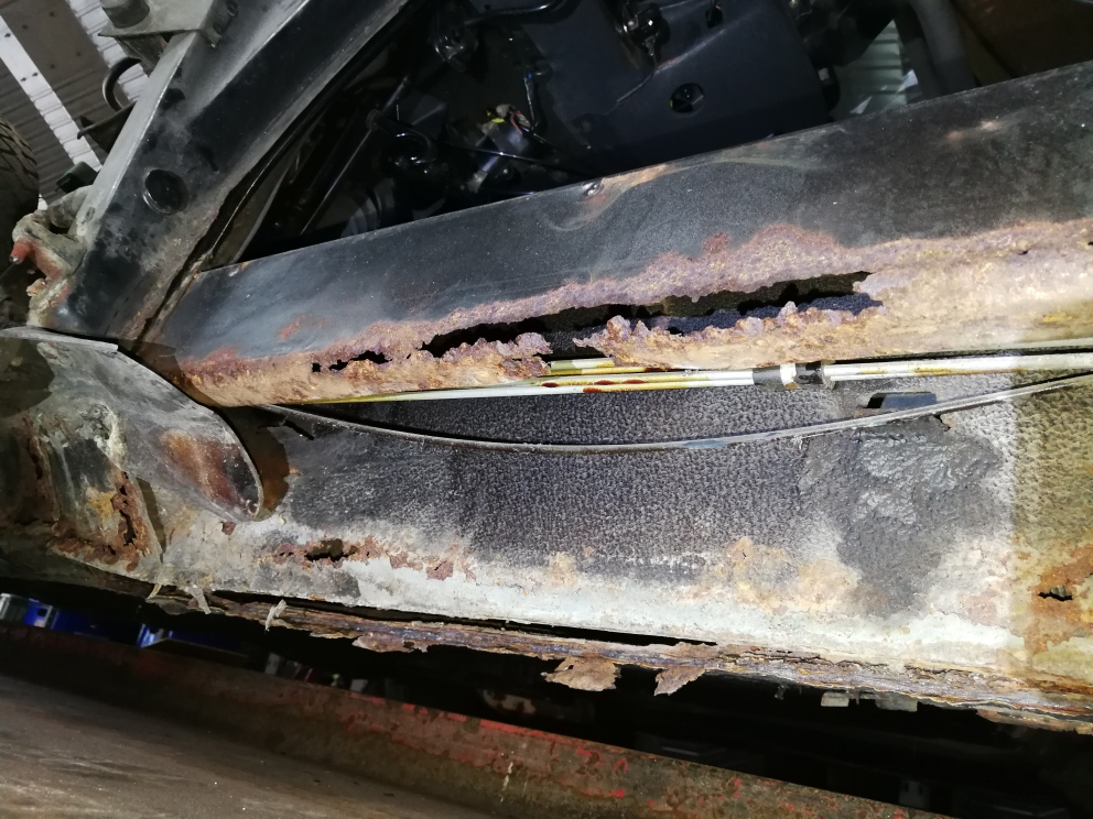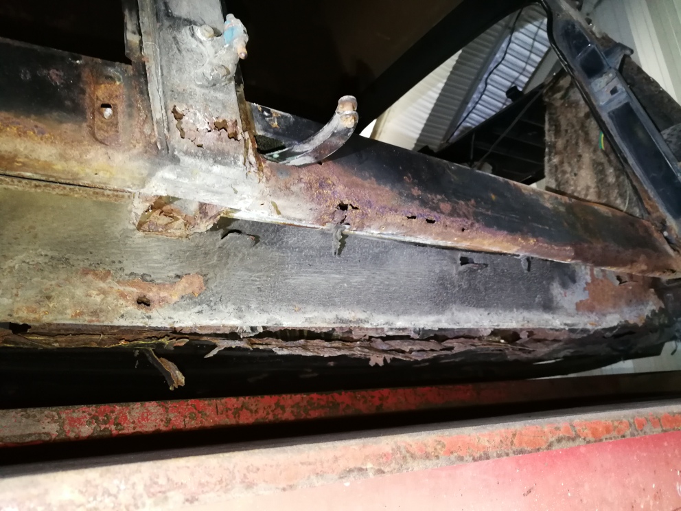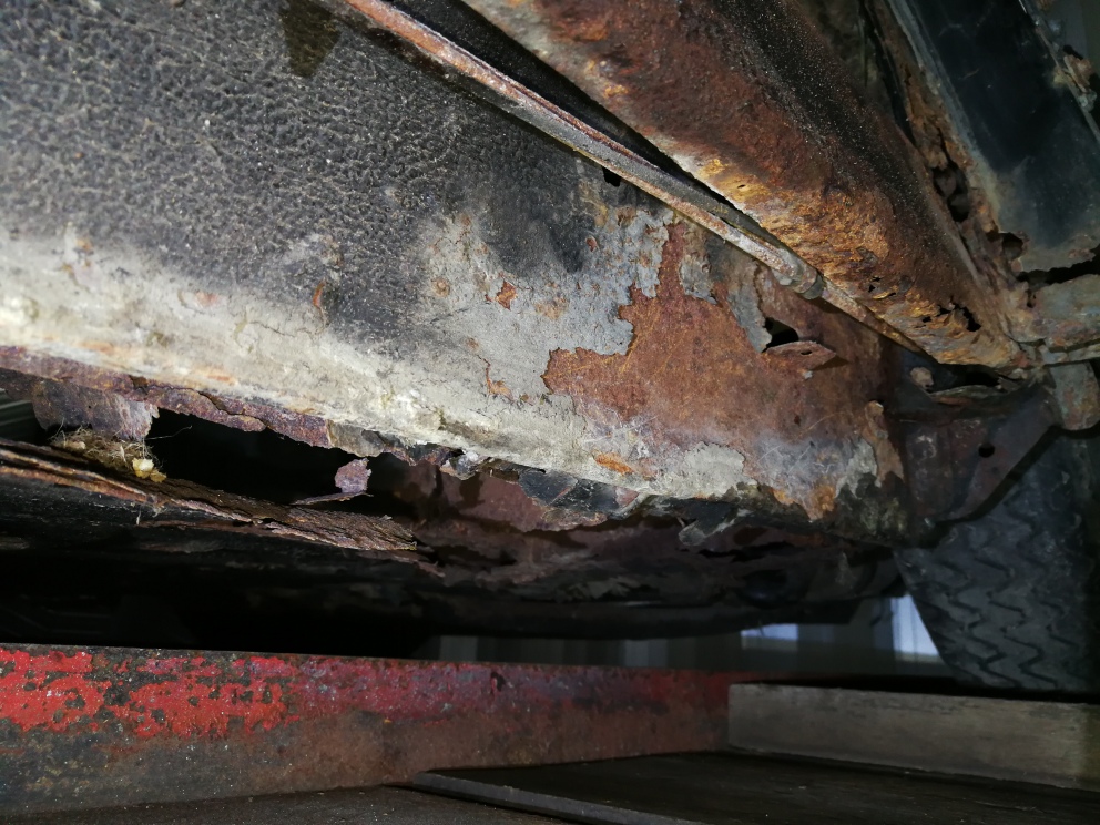Durch waren auch die Spritzbleche hinter der Rückbank komplett im unteren Bereich - man konnte locker 3-4 cm das Chassis wie eine Hängebrücke bewegen.
