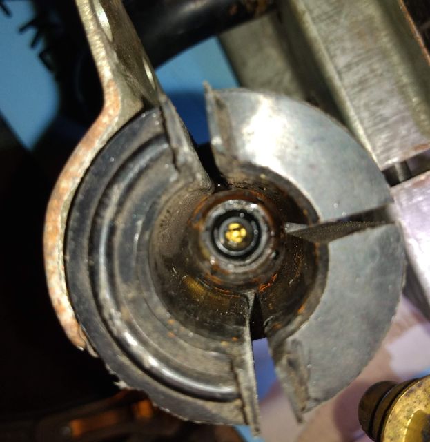 Eine Sache könnte ich mir vielleicht noch vorstellen - der Stift der im Thermoelement steckt (und bei Erwärmung weiter ausgeschoben wird) hat ja eine Art Bund, an dessen Schulter stützt sich der obere Teller ab. Bei meiner vorgefundenen Version war das nicht besonders eng toleriert - vielleicht kann das drüberrutschen und die ganze Mimik an Vorspannung verlieren. Aber der Effekt sollte minimal sein...