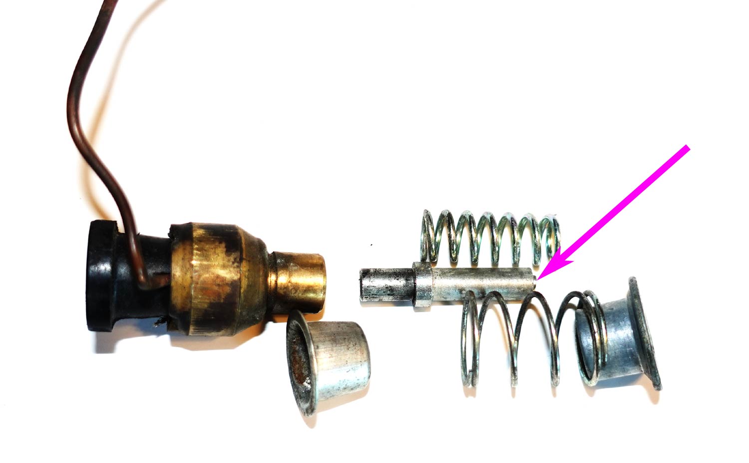 Im SM ist der Stößel deutlich kürzer, es gibt nur einen Teller (plus den Gummiventilteller), und der Kopf des Thermoelements ist anders geformt, wegen der Hebelbetätigung.