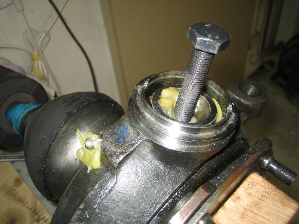 Mit der Schraube im Loch, ließ sich die Schale per Fettpresse rausrücken.
