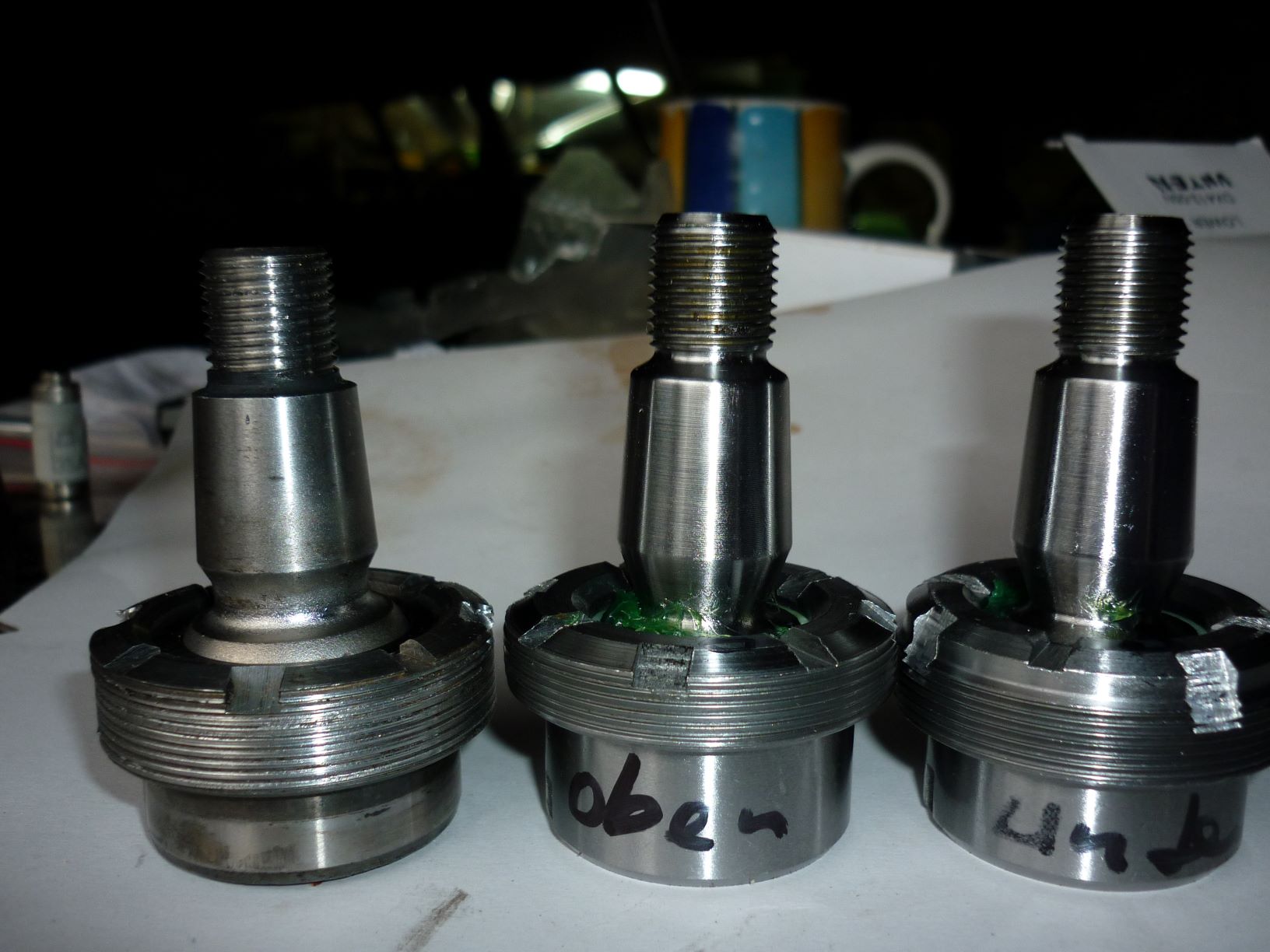gekauft von Sassen -Düsseldorf . Die Muttern haben weniger Gewindegänge wie die originalen Kugelbolzen , jedoch ist die Kontruktion ja auch etwas anders .