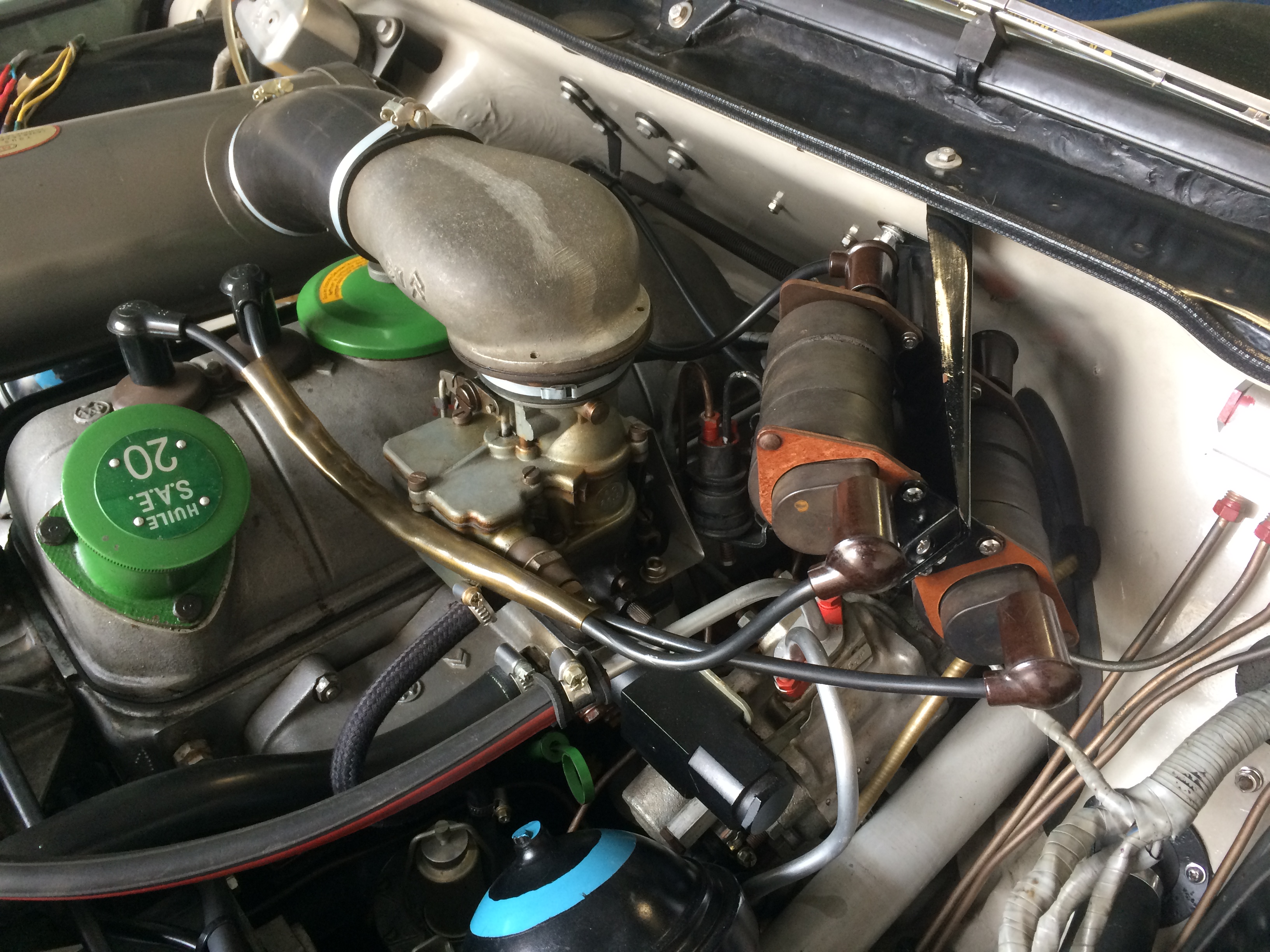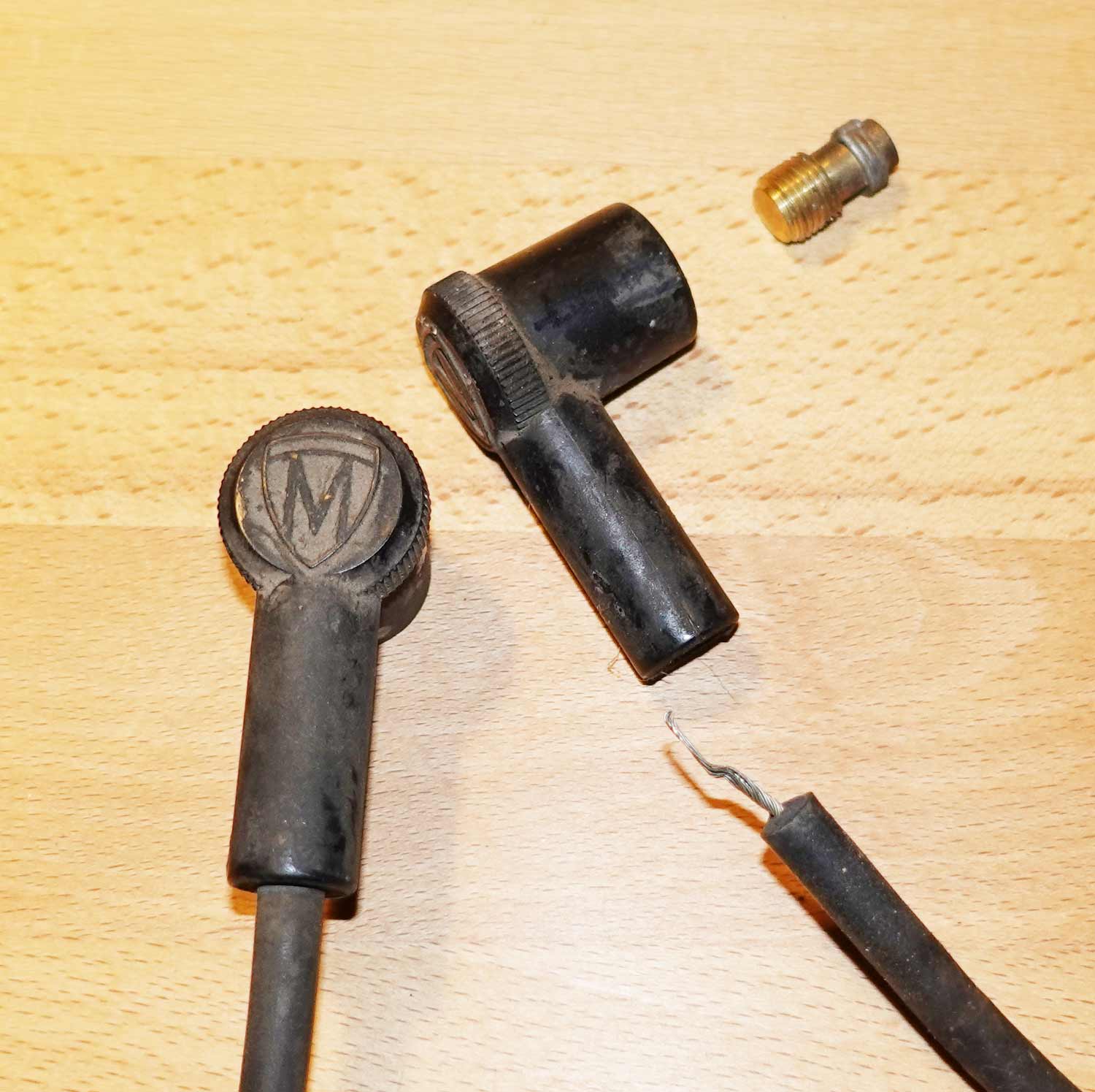 Die Stecker wie auf Jürgens Foto (an den vermeintlich originalen Kupferkabeln) sind auch in meiner 58er DS verbaut. Auf den Kerzen sitzen die von Robert beschriebenen separaten Widerstände mit 1kohm, wie von Andreas erwähnt (kleine Zylinder zwischen Kerze und Verlängerung).