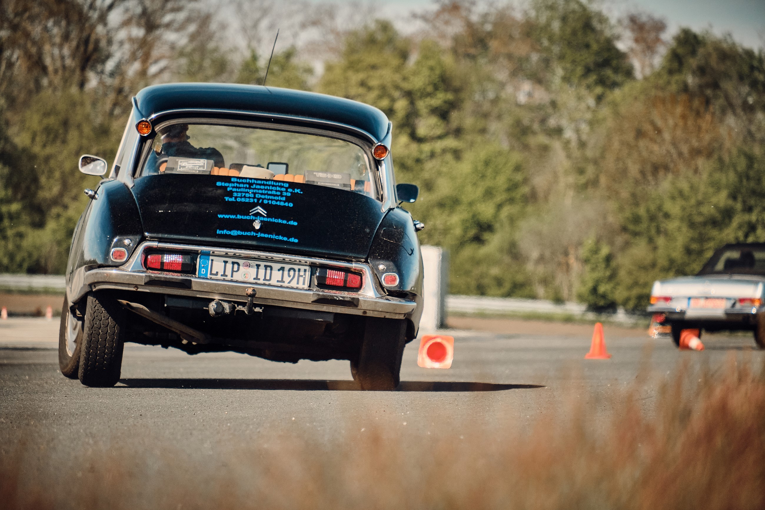 Fazit: Zumindest den etwa gleichaltrigen Fahrzeugen war der Frosch in seiner Fahrsicherheit eindeutig überlegen. Bremsen und Ausweichen auf trockener oder leicht feuchter Fahrbahn sowie den Slalom, die Schleuderplatte und die glatte Kurve hat er im Vergleich zu den anderen Oldtimern souverän gemeistert. Bremsen und Ausweichen bei Glätte war hingegen schwieriger, hier war ich mit den Ergebnissen nicht so zufrieden. Man muss sich also klar darüber sein, dass die D-Modelle in Sachen Bremsweg und beim Ausweichen deutliche Nachteile gegenüber moderneren Fahrzeugen mit Fahrassistenzsystemen wie ABS oder ESP haben. Aber der Frosch hat Vorteile durch das gute, spontan ansprechende Fahrwerk, die guten, wenn auch bei Glätte nicht leicht zu dosierenden Bremsen, den Frontantrieb, das hohe Gewicht auf der Vorderachse und den langen Radstand.