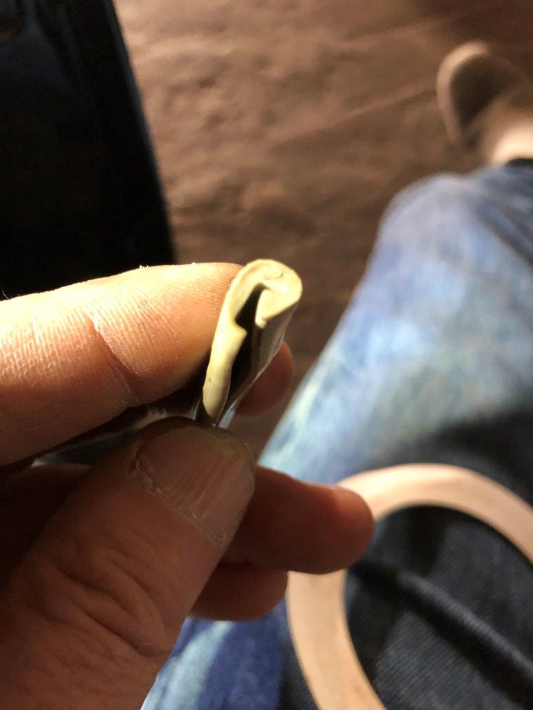 Ich habe gerade die "Klemmblechstreifen"(?) der dicken umlaufenden Türdichtungen festgeklöppelt. Sowohl die äußeren als auch die inneren. Innen festklöppeln war wohl falsch, weil innen noch die graue "Zierdichtung"(?) mit in den Falz reingehört.