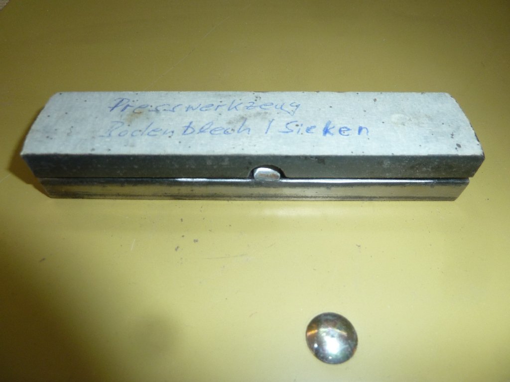 ich habe vor vielen Jahren bei der Restaurierung meiner ID fast alle Blechteile selbst hergestellt, auch die Bodenrandbleche. Ich habe hier noch ein kleines selbst gefertigtes Presswerzeug zum Pressen der Sicken an den Bodenblechen liegen. Sollte jemand so "dumm" sein und meint er müsse auch alles selbst dengeln, der kann das Teil gegen Versandkosten gerne haben.
