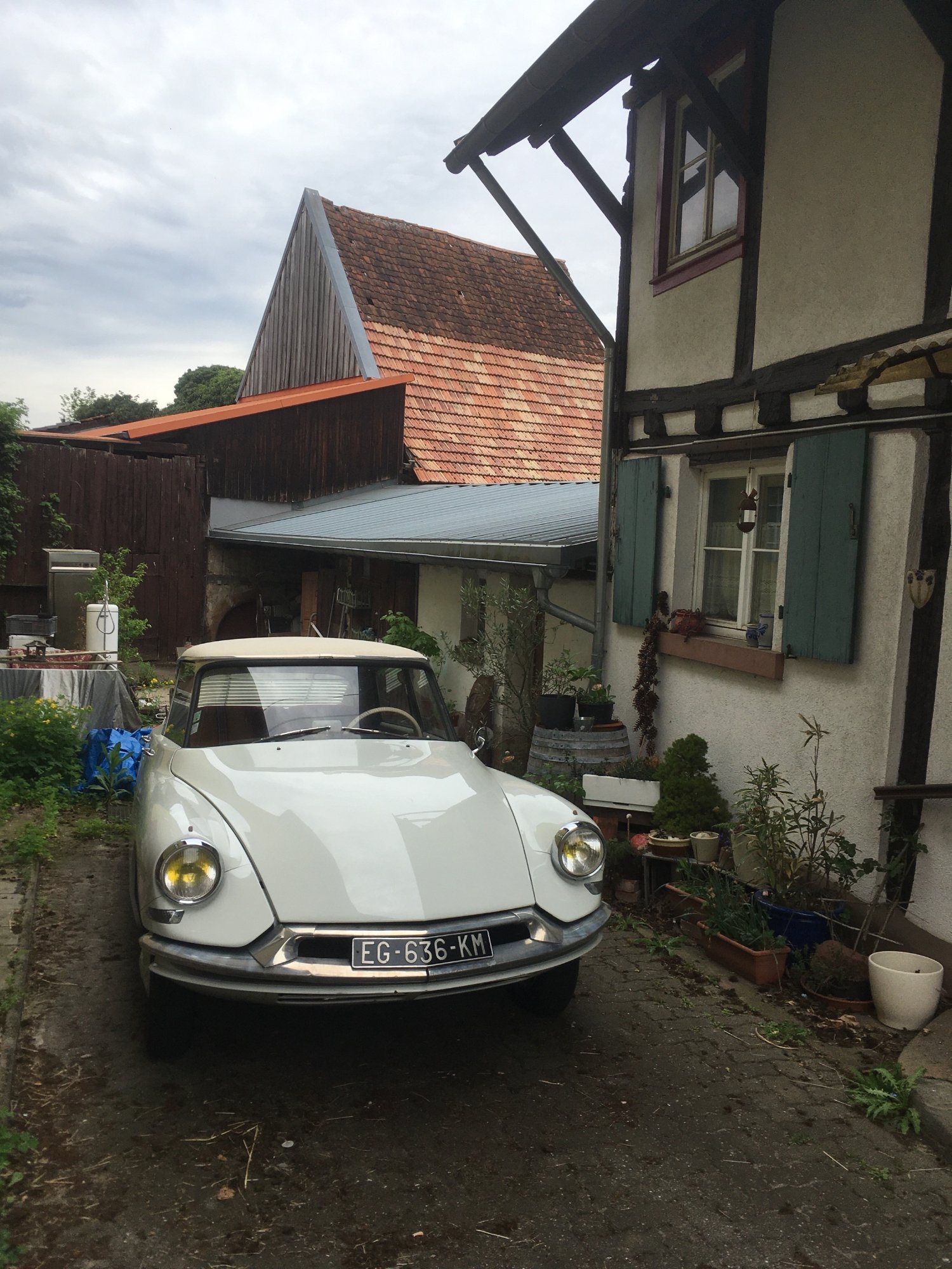 Papierkram erledigt und die Neuerwarbung aufgeladen, einiges an alten Rechnungen und Fotos von durchgeführten Arbeiten mitbekommen, bei einem Freund des Verkäufers aus dem lokalen DS-Club noch 2 Kanister LHS2 aus Altbestand erworben und dabei die traurigen Überreste dessen DS - nach Aussage meines Verkäufers noch schöner als seine, nein jetzt meine! - begutachtet, die Opfer eines Werkstattbrandes geworden war... schlimm!