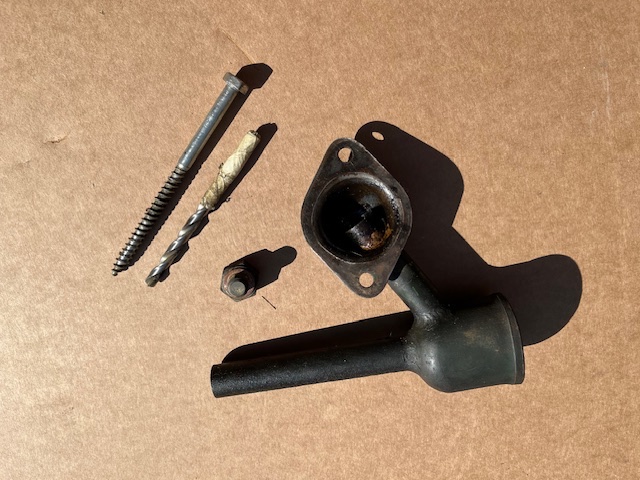 Daraufhin nahm ich eine 133 mm lange Holzschraube, die ich in die „Schlonz-Bohrung eindrehte. Ab einer bestimmten Tiefe konnte ich die kleine Ratsche mit 13er Nuss verwenden.