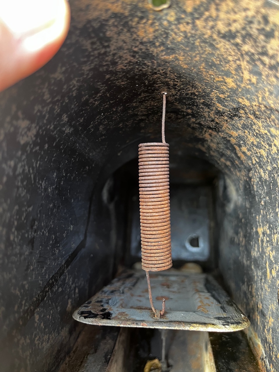 Sorry Karl, es hat sich ausgefedert. Den Lüftungskanal habe ich gefunden aber die Feder war schon raus.