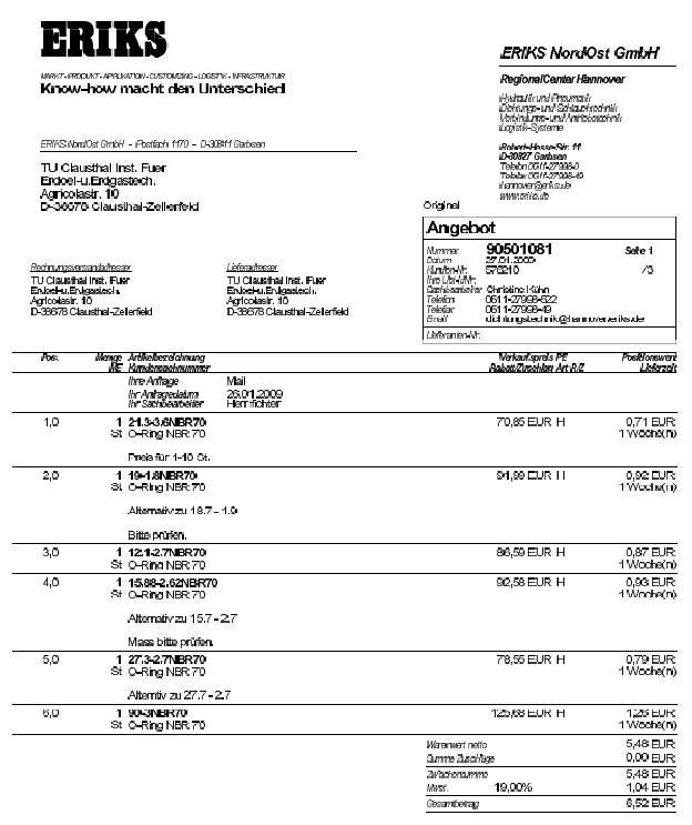 Je nachdem was ihr machen wollt. Also ich habe die Dichtungen erneuert da meine Pumpe getropft hat. Hierzu habe ich aus dem DS Club Form herausgefunden das für die Dichtungen in Tabelle 1 aufgeführt sind der Werkstoff NBR 70 in Frage kommt (für grüne Göttinen). Hierzu habe ich mir ein Angebot bei Eriks geholt (Abbildung 6).