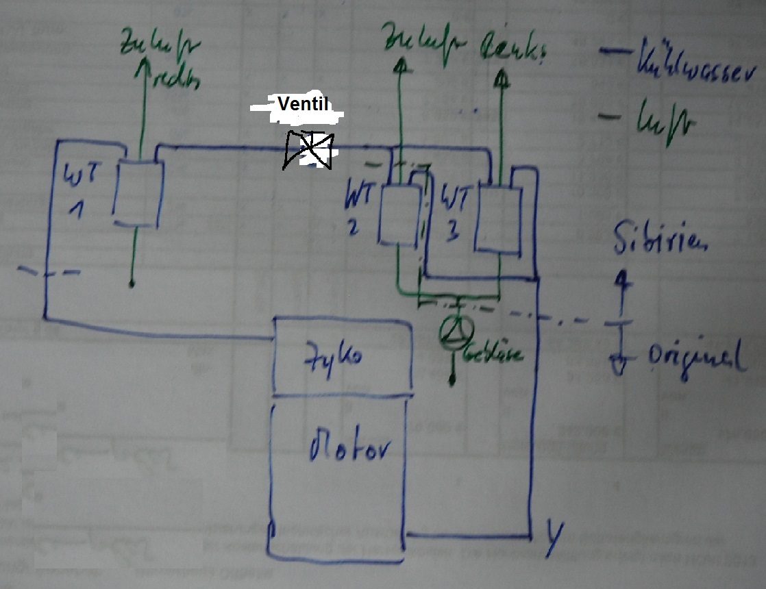 Zusammenführung WT 2 und WT 3 - Y - dann auf unteren Motoranschluß ...