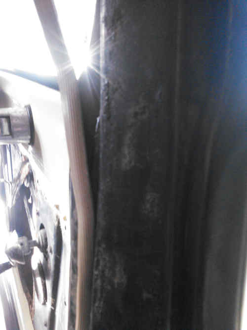 Im Foto sieht man die offene linke hintere Tuer, von innen die B Saeule, und die unmoeglich einzusetzene Verzierung.
