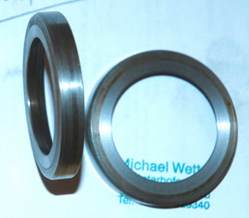 Die waagrechete Fläche des Ringes ist die Ebene auf der die Lippe des Simmerrings läuft und bildet am Übergang zum Flansch der Nabe eine ziemlich scharfe Ecke aus. Ich denke diese Ecke war konstruktiv nicht erwünscht, desshalb wurde der Übergang zwischen Nabe und Flansch in einem großen Radius ausgeführt, darüber liegt der Ring. Dieser geht allerdings mit der Nabe gerne eine sehr innige Verbindung ein und ist dann nur schwer von dieser zu trennen.