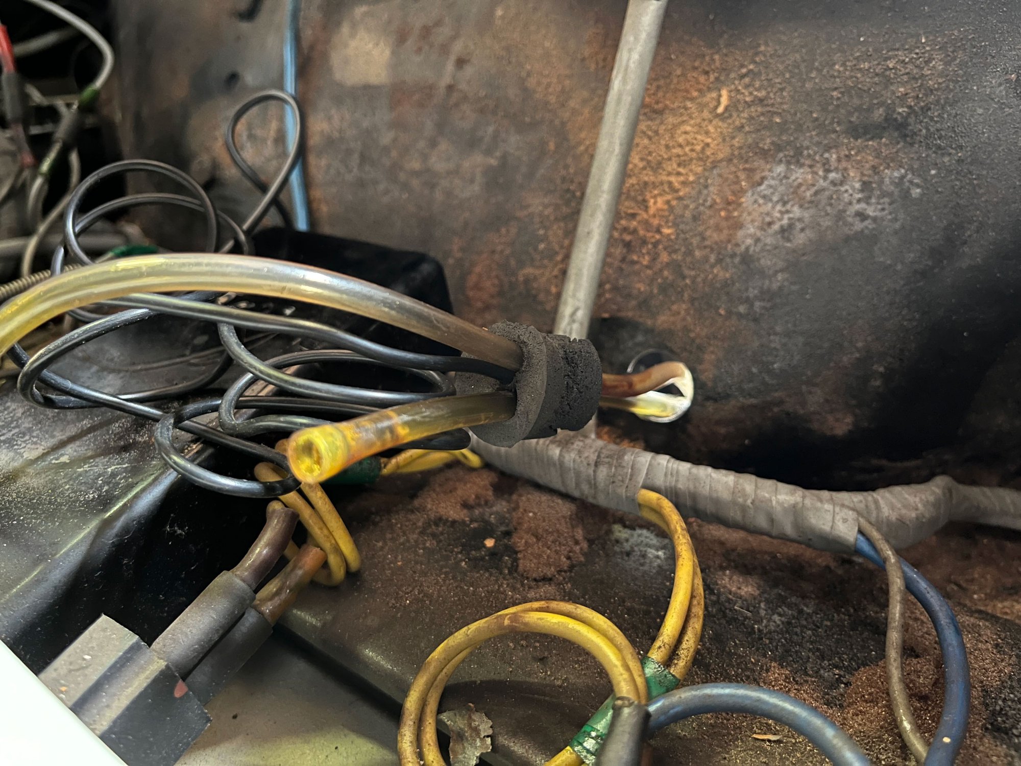 Die Sensorleitung habe ich durch den Dürchführungspunkt der Scheibenwasschläuche gelegt und mit Kabelbinder (jaja, nicht zeitkontextgetreu) am Heizungsrohr befestigt.