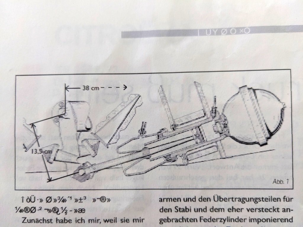 Die Druckverhältnisse im Federungssystem hängen (natürlich außer der Beladung des Wagens) EINZIG NUR von der Winkelstellung des Hydraulikzylinders zum Hinterachsschwinge und von der Winkelstellung der Hinterachsschwinge zur Straße ab, und dieses Verhältnis ist hochgradig nichtlinear.