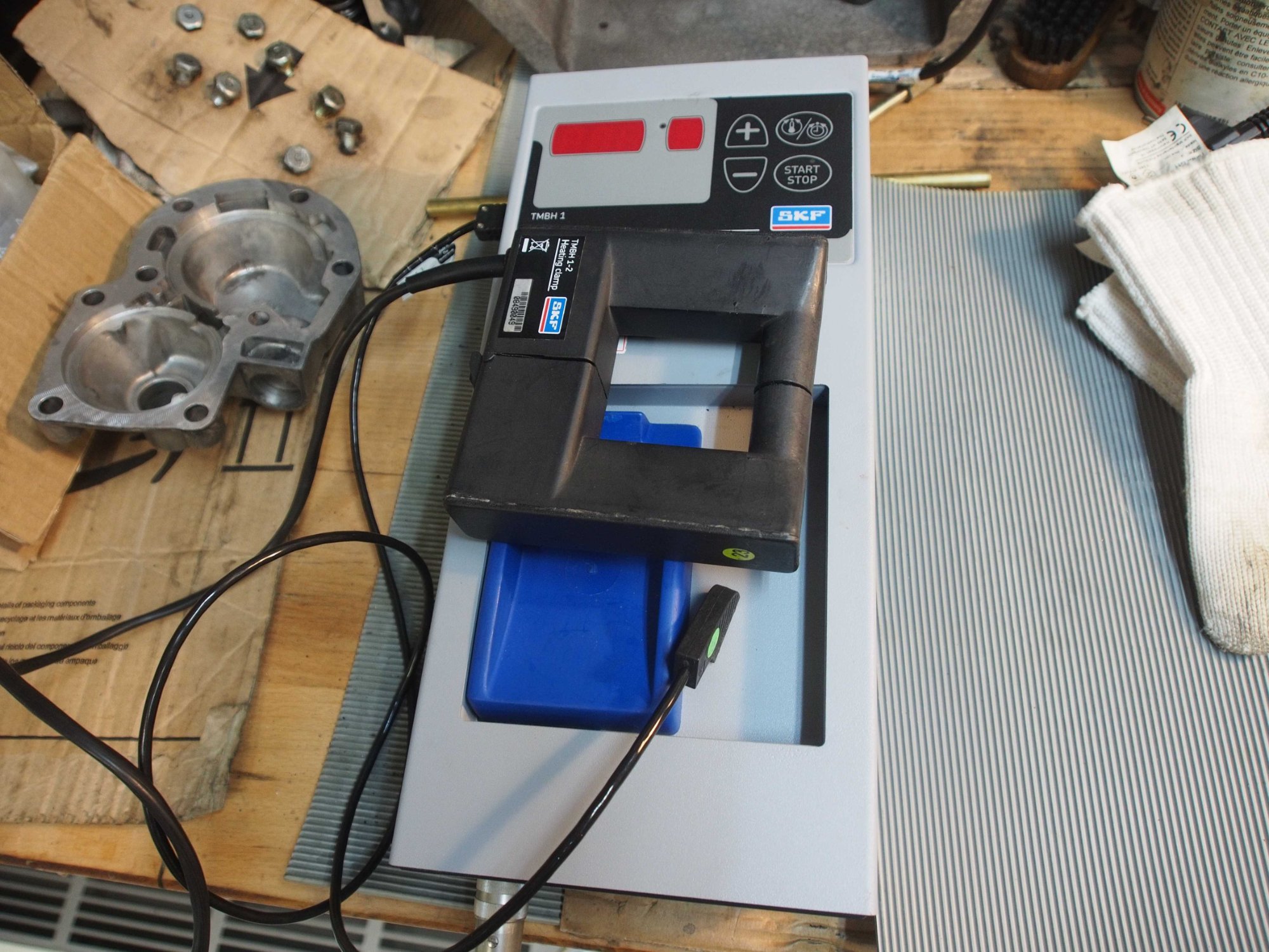 Das defekte Rollenlager wurde ersetzt. Bei der Montage hat das kleine Induktionsgerät zum Anwärmen schön funktioniert.