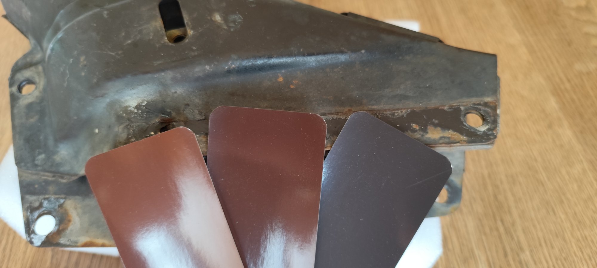 Und bei 60 Jahre alten Blechen aus dem Motorraum fragt man sich natürlich auch noch, was die Pigmente in den letzten 60 Jahren unter Hitze, Dreck und Öl so alles durchgemacht haben...