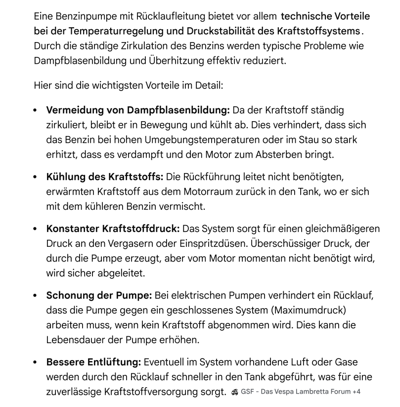 ... und die originale BOSCH-Pumpe nicht in den Müll schmeißen. Die muss i.d.R. nur gereinigt werden. Die Pumpe erzeugt einen hohen Vordruck (4-5 bar) und drückt den Sprit ausreichend durch den speziellen "Scheibenfilter" im Tank. Und das im vorteilhaften Dauerbetrieb. Siehe auch: KI-Anlage: