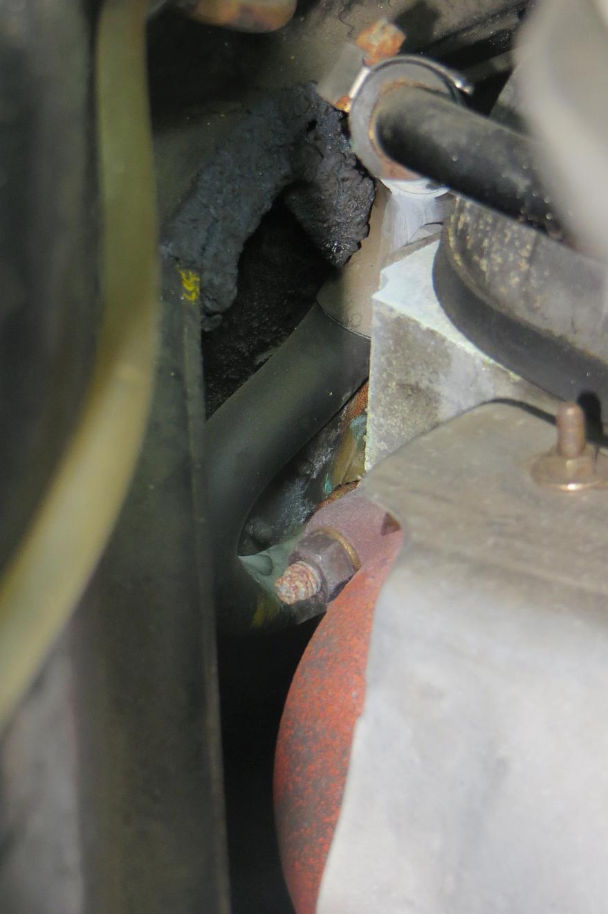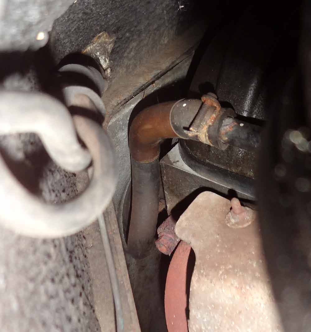 Hier ein Photo vom Schlauch an mein 1968-er DS19, ich das ist die originale Befestigung (ich habe den Schlauch allerdings mal ausgebaut um das Heizungsventil auszubauen).