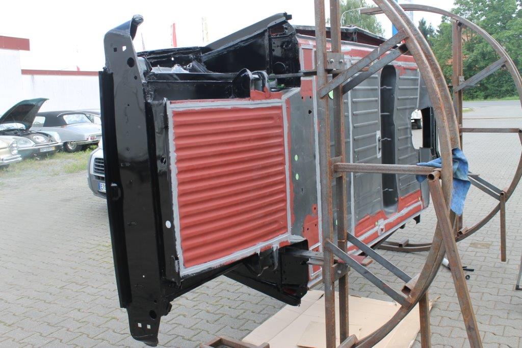 Das Chassis wurde im Tauchbad entlackt und anschließend notwendige Blechsanierung durchgeführt.