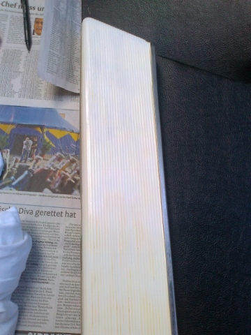 Also: Ich kann jetzt mal eine Rückmeldung geben, wie die Reinigung mit Aceton funktioniert hat. Prinzipiell geht das ganz gut, aber wie ACCM Alex und Mathias schon angedeutet haben, muss man damit echt sparsam umgehen. Mein Tipp: Immer großflächig wischen und den Gilb Schicht um Schicht abtragen. Ich habe zwei Fotos gemacht: Auf dem ersten Bild kann man noch den Ursprungszustand erkennen (ziemlich dreckig und verspeckt).