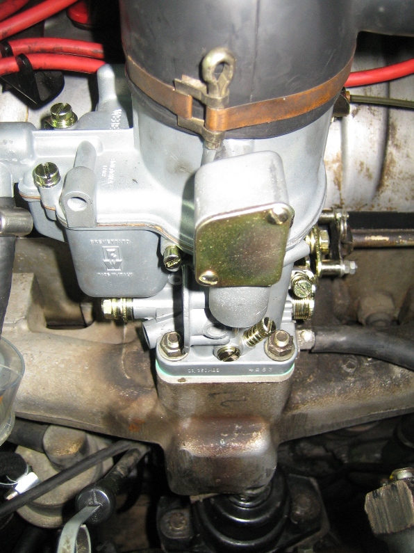 Der kleine Gummischlauch rechts unterhalb des Vergasers wird abgezogen und still gelegt. Dort kommt der 2. Schlauch vom Regelventil dran.