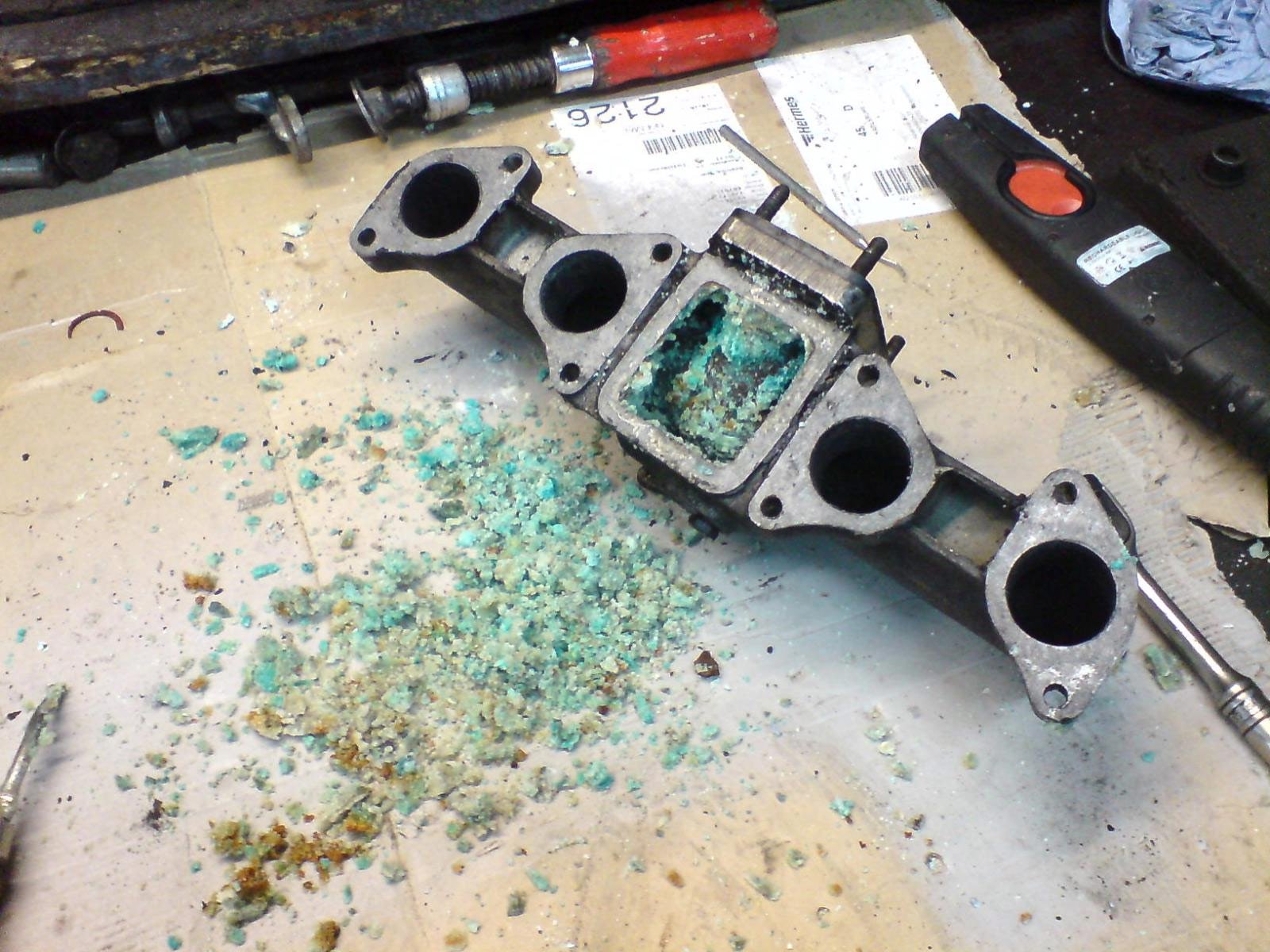 So wie ich das von den Vorbesitzern vernommen habe, ist der originale Kopf wegen erheblicher Korrosion und Überdruck im Kühlsystem ausgetauscht worden.