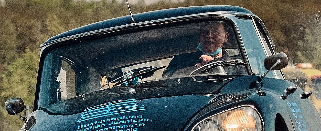 Ach, Moment... vielleicht habe ich da einfach nur gerade ziemlich viel Spaß. Gonzo hingegen (vor dem Innenspiegel) sieht etwas bedrückt aus...