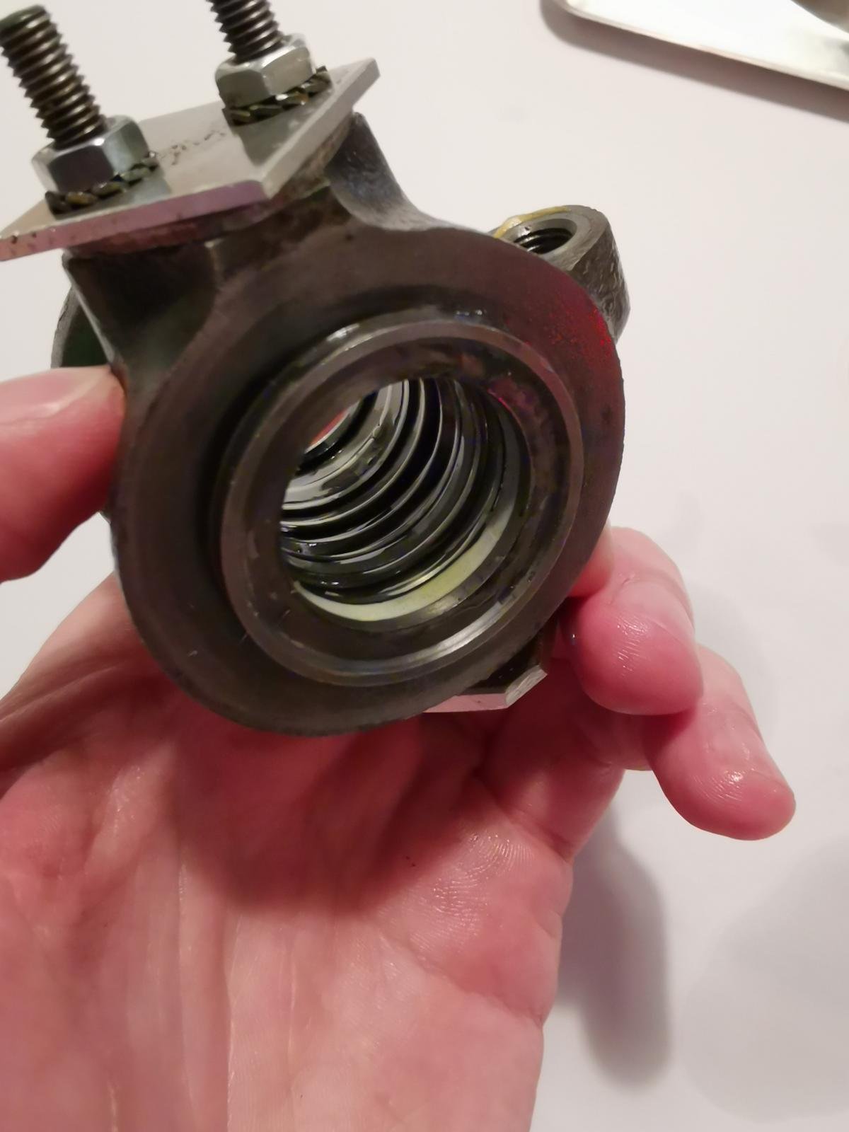 3. Die Fortsetzung kommt hoffentlich bald, ich muss noch die restlichen Bilder zusammen suchen. Der von dir angesprochene Teflonring im Arbeitszylinder war dann nochmal richtig spannend, denn das Dehnen und Stauchen des Ringes ist schon etwas besonderes. Wir das ganze vorher mit dem alten Ring geübt, um ein Gefühl dafür zu bekommen. Wir hatten Sorgen, den Ring ungleichmäßig zu dehnen, oder zu wenig/zu stark zu stauchen, und dabei zu zerkratzen. Am Ende hat es gut geklappt, aber ich rate wirklich dazu, es vorher mit dem alten Ring zu üben.