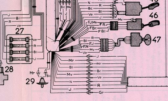 Im Handbuch geht aber keine violette Leitung nach hinten, höchstens eine lila (mv). Die kommt aber bei den Rückfahrleuchten raus.