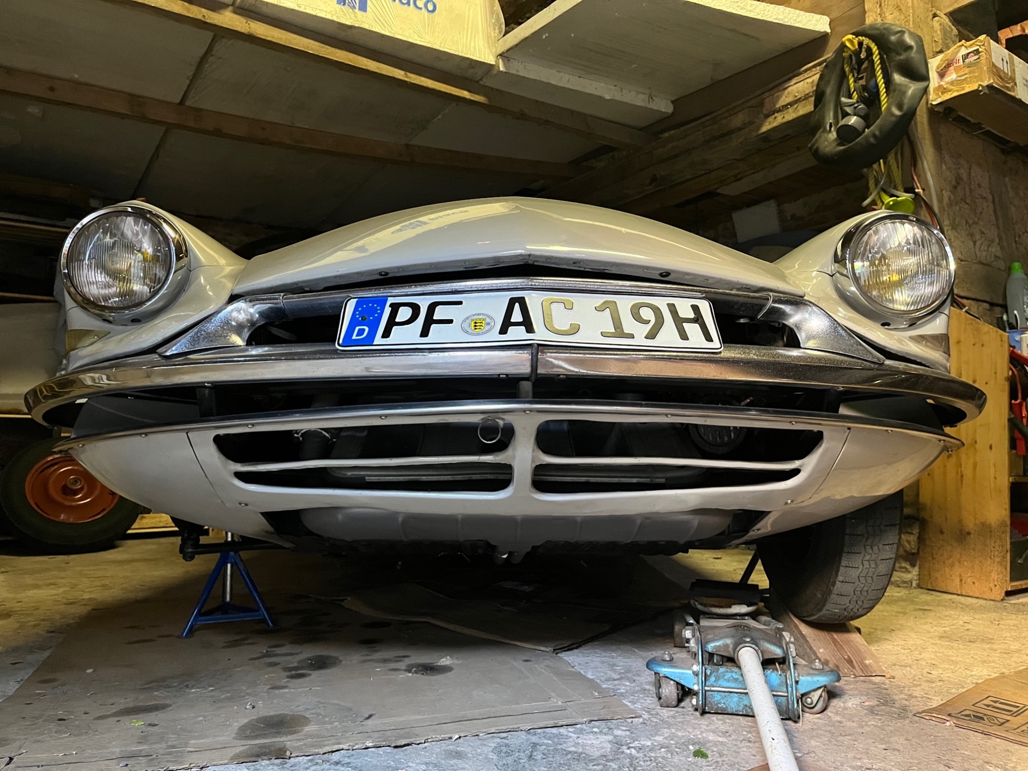 ich habe die DS vorne aufgebockt und die Radaufhängung mit hängenden Rädern kontrolliert.