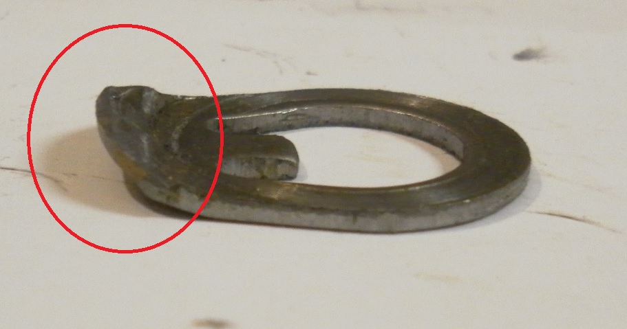 Beim Zerlegen musste das Sicherungsblech was die Kolbenstange sichert aufbiegen. Dieses muss jetzt wieder zurückgebogen werden. Ich befürchte, dass dadurch die Lasche abbricht weil sich die verbogene Stelle verhärtet hat.