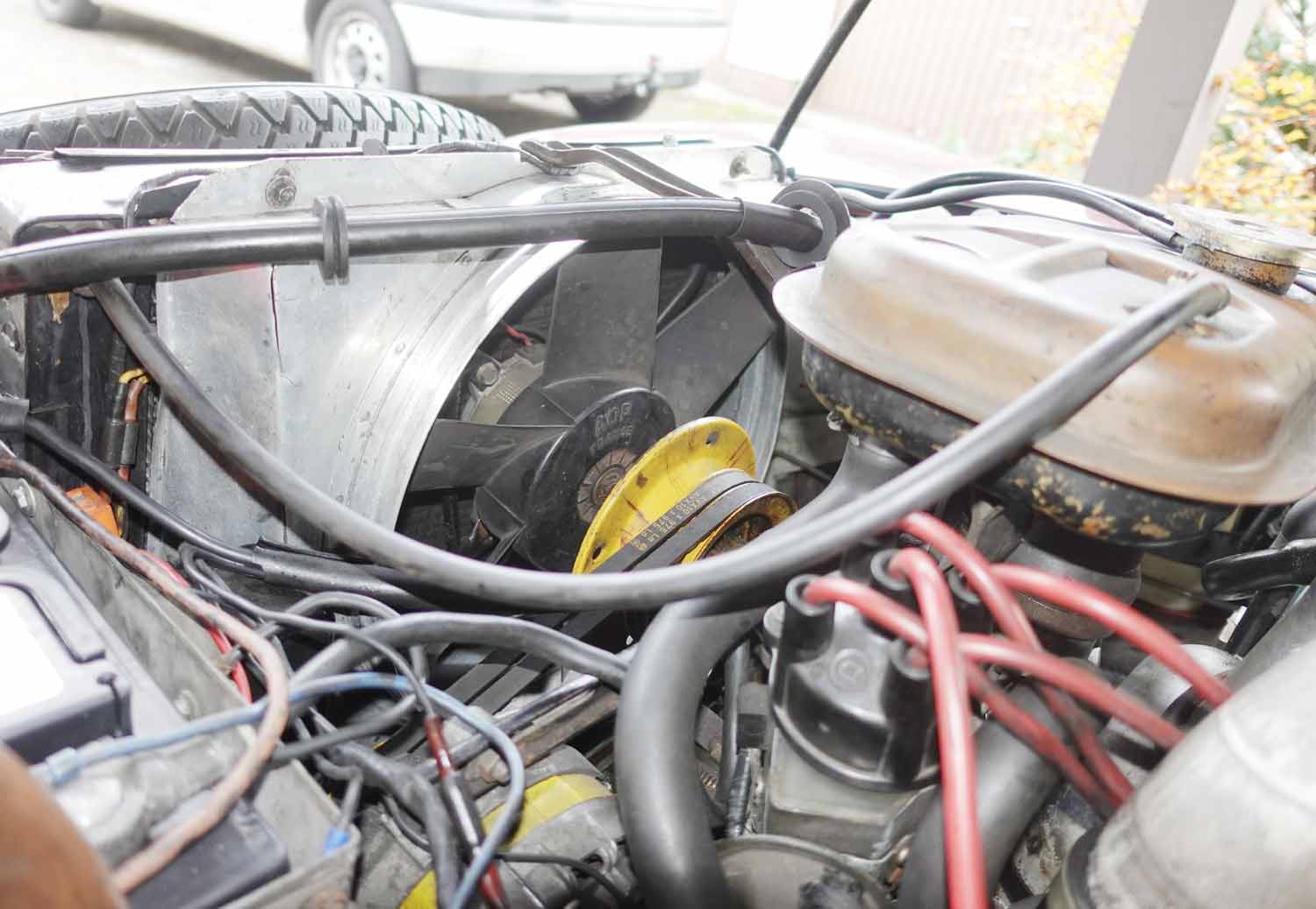 Der Umbau auf einen Elektrolüfter sollte heute eher einfacher sein, mit dem großen Kühler funktioniert es besser. Ich habe einen Lüfter aus einem BX Turbodiesel verwendet. Er ist aber noch etwas knapp mit seinem Luftdurchsatz.