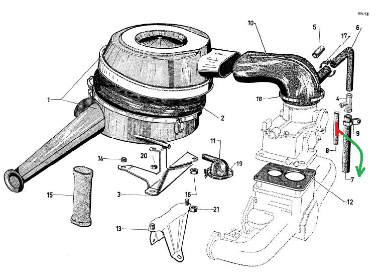Wobei dieser Schlauch Nr. 8 in wirklichkeit horizontal angebaut ist. Nur hier zur Darstellung ist er vertikal