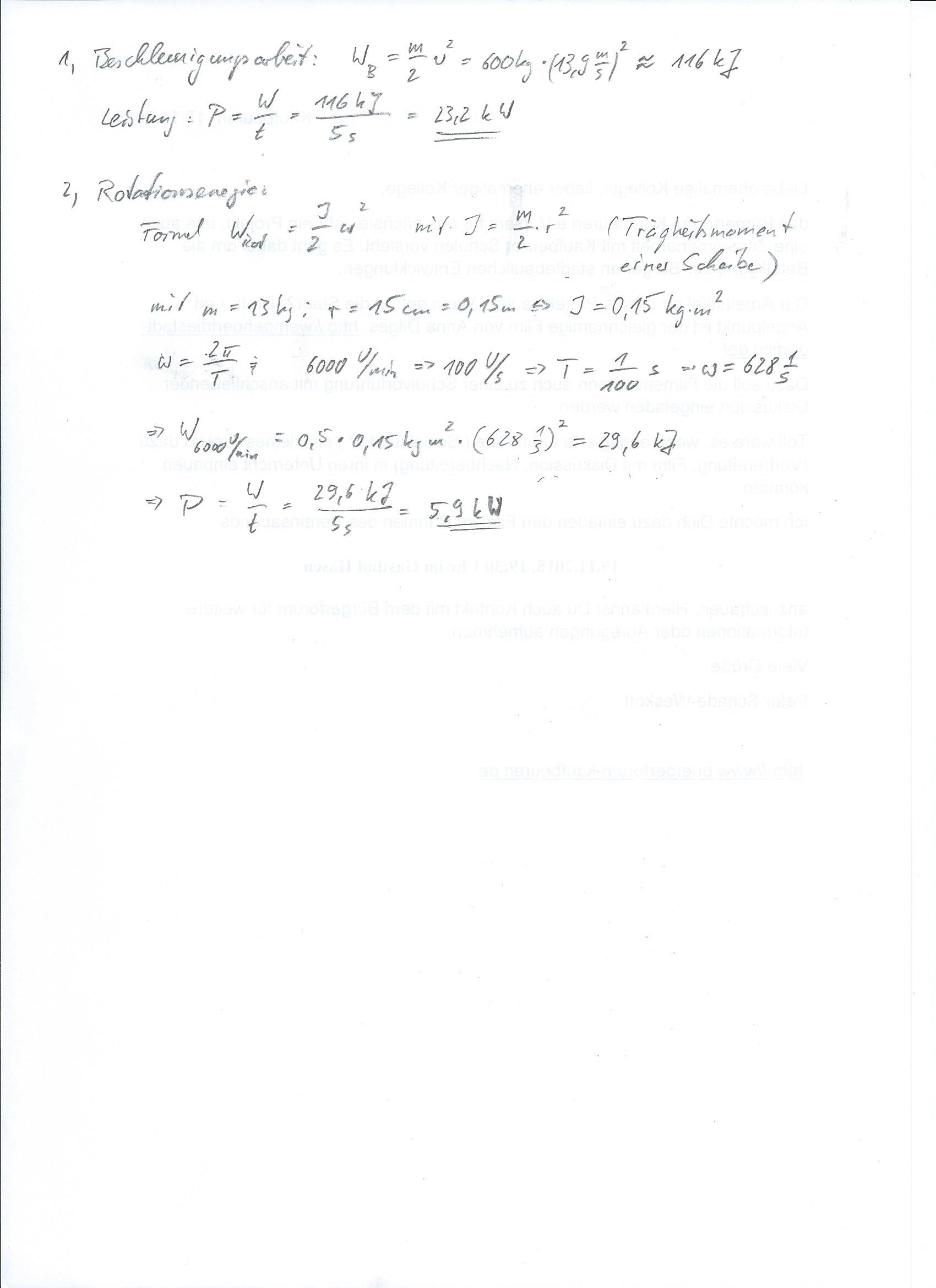 Benötigte Leistung für das Schwungrad (Berechnung über das Trägheitsmoment...): 5,9kW