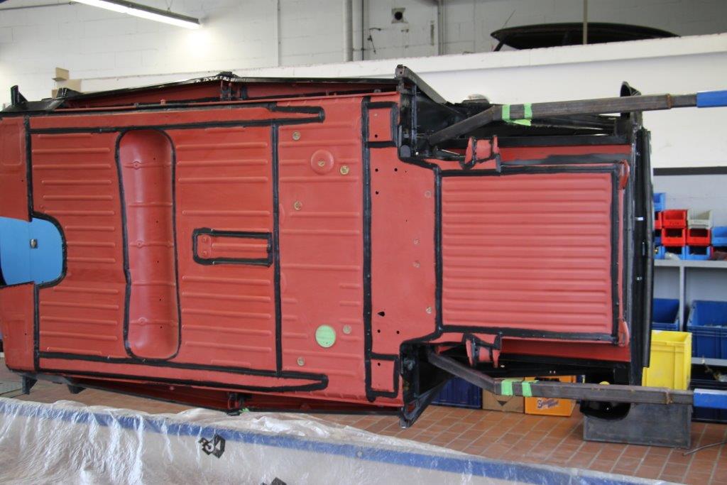 Tauchentlackung, Blechreparatur, Neuaufbau wenn nötig, Grundierung, Abdichtung aller Nähte, Endlack – Steinschlagschutz und anschließend Hohlraumversiegelung.
