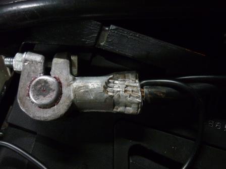 Ich hatte das alte Minus-Kabel vor ca.4 Jahren gegen ein neues ausgetauscht und werde nun die alte Minus-Klemme an das neue Kabel schrauben .