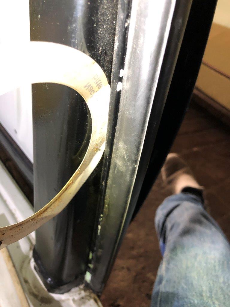 Ich habe gerade die "Klemmblechstreifen"(?) der dicken umlaufenden Türdichtungen festgeklöppelt. Sowohl die äußeren als auch die inneren. Innen festklöppeln war wohl falsch, weil innen noch die graue "Zierdichtung"(?) mit in den Falz reingehört.