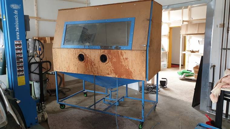 Da ich in meiner Kabine grade Korundstrahlgut drin habe, das aber schon etwas älter ist habe ich das auch mal ausprobiert.