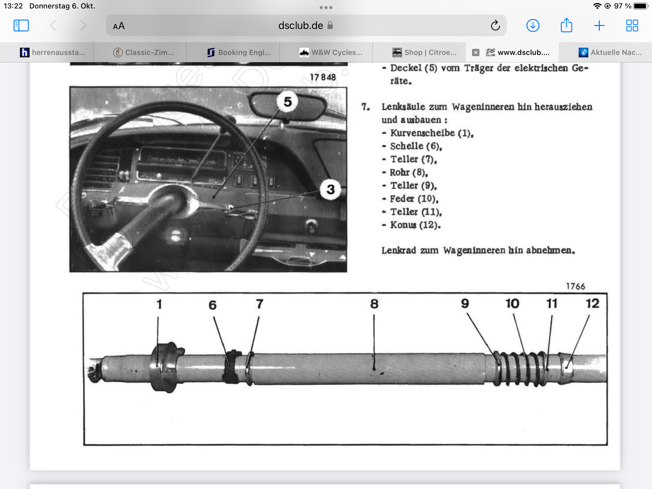 Auch hier nach langem Suchen und lesen in den Reparaturanleitungen bin ich auf die Feder ( 10 ) in der Lenksäule gestoßen. Ich habe die Hülse, Rohr ( 8 ) mal verdreht. Danach war Ruhe . Die Frage die bleibt ; wofür ist die Feder ?