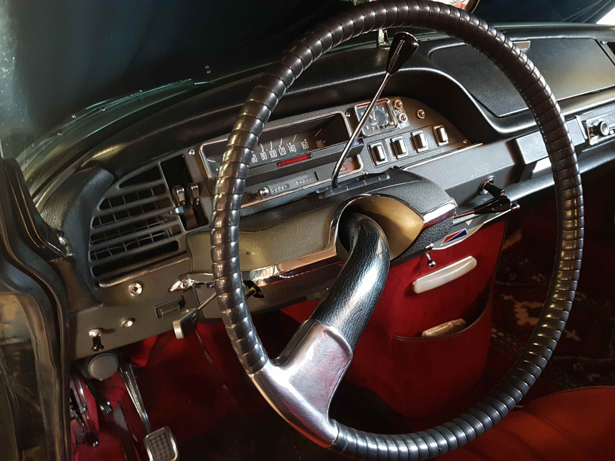 Das 1969er Armaturenbrett hat bereits Drucktasten (aber noch einen eckigen Tacho und keinen Drehzahlmesser).