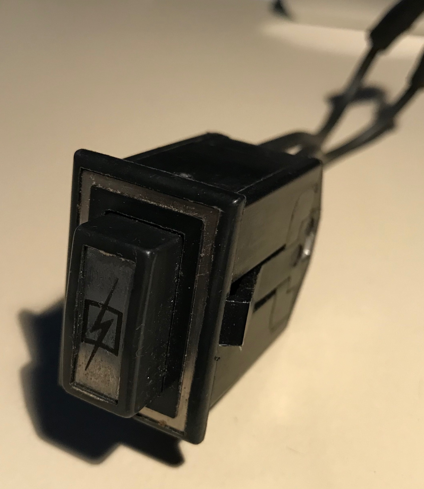 Tatsächlich unterscheiden sich der von Dir fotografierte Schalter für die heizbare Heckscheibe vom Schalter für die Modelljahre 1970-75 (vgl. Bild). Das Blitz-Symbol ab 1970 erscheint stilisierter, "eckiger".