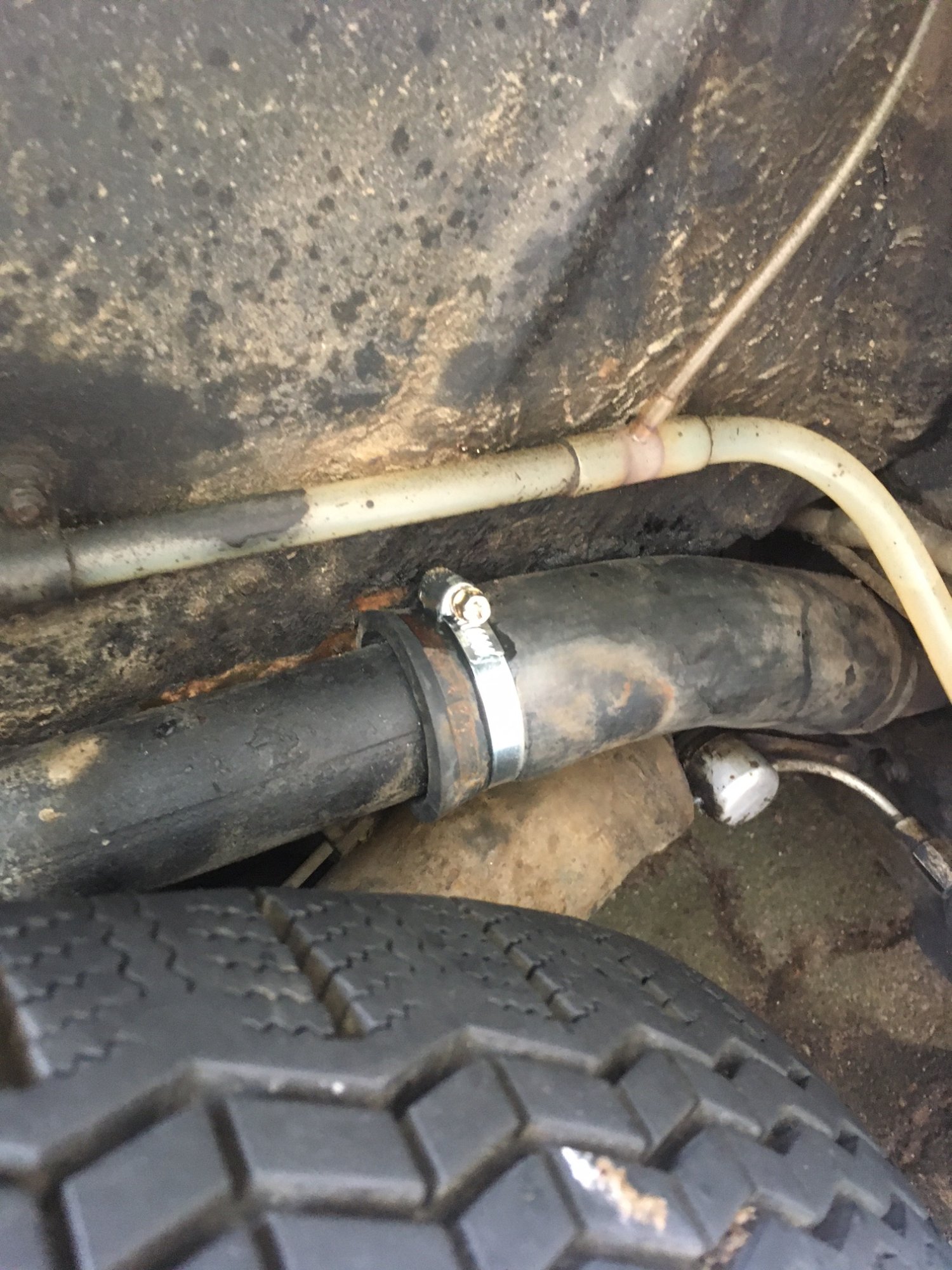 Abdeckblech weg und der Übeltäter war gleich gefunden - die Ligarex-Schelle die den Gummischlauch hält der Tank und Tankstutzen verbindet war weggerostet...