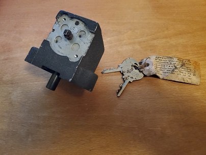 Ein neues Zündschloss für eine 69er DS mit ein paar kleinen Lagerspuren und 2 St. leider leicht angerosteten Schlüsseln.