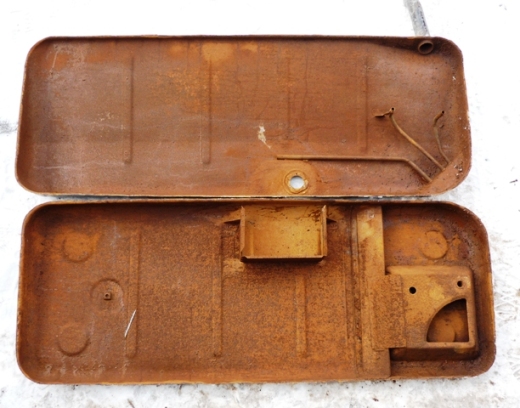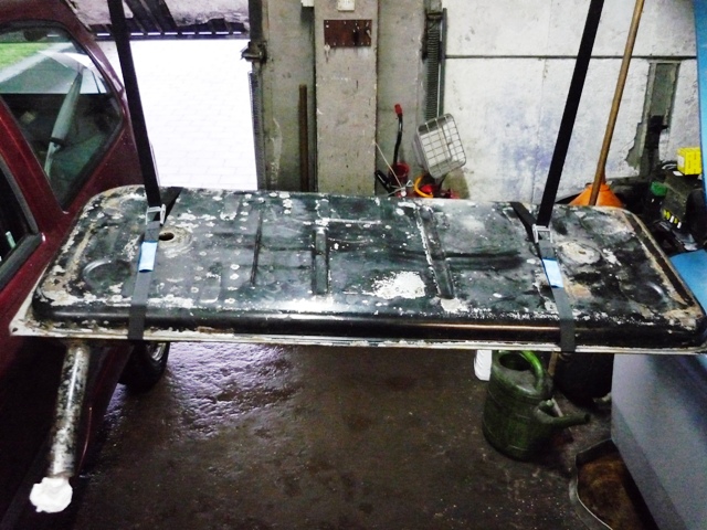 Bild 2 ist der Anblick von innen, welcher mich sehr erschreckt hat, da das Auto angeblich die letzten 10 Jahre in einer Halle gestanden haben soll. Es zeigte sich auch ein erheblicher Unterschied des Rostangriffs zwischen Bezin- und Luftbereich.