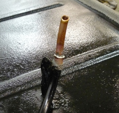 Bild 6 zeigt noch deutlicher die Schlacht zwischen Ferrit und H²O, hier fand der Angriff aber auch von 2 Seiten statt !! Das Rohr ist nur die Führung des Ansaugschlauches, welcher bei mir sehr schwer rauszuziehen ging. Um später beim reinschieben nicht auf halber Höhe steckenzubleiben und dadurch immer nur den halben Tank leerfahren könnte, s. Bild 7.
