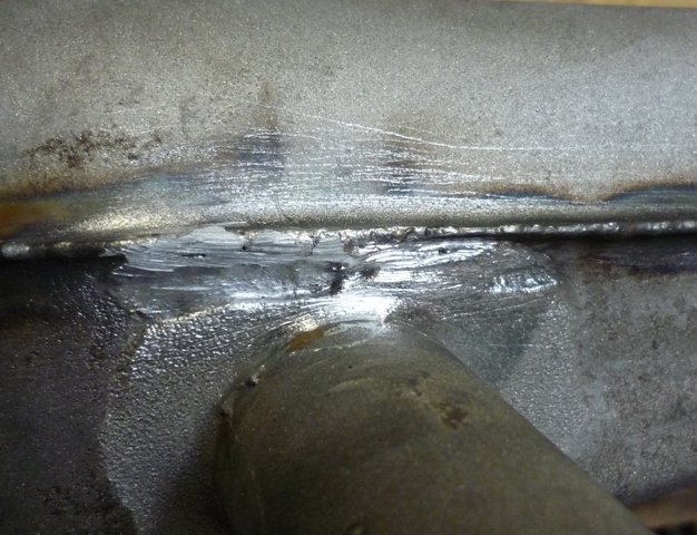 Bild 10 zeigt die Schweißnaht, welche ohne Drahtzugabe gelang, da die Bleche sauber aufeinanderlagen.