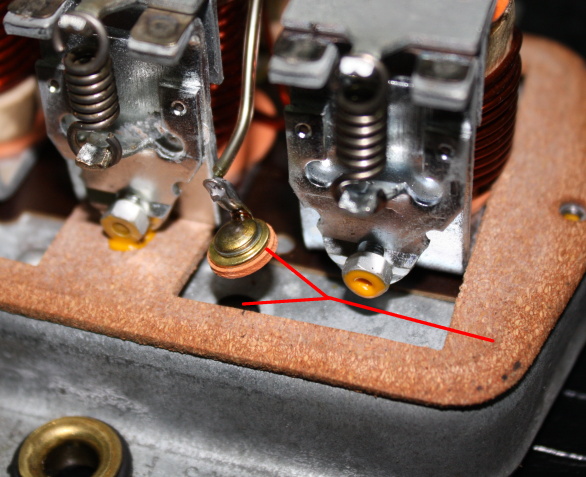 Der Mittlere, also der Stromregler hatte oben ein kleines Kegelchen ausgebildet, dem unten ein entsprechendes Löchlein gegenüber sitzt. Da können die Metallurgen wohl etwas zum Thema "Funkenerosion" oder so beitragen. Dieser arme Kontakt macht ja die Hauptarbeit, weil er 4-5 mal in der Sekunde schaltet.