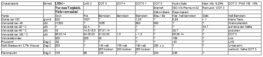 Im Internet gibt es mehrere sehr gute Zusammenfassungen zu DOT Bremsflüssigkeiten. Hier sind zwei: